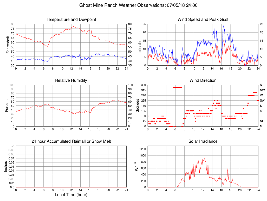 Temperature (F) 56.5 55.7 @ 06:45 77.5 @ 12:30 65.7