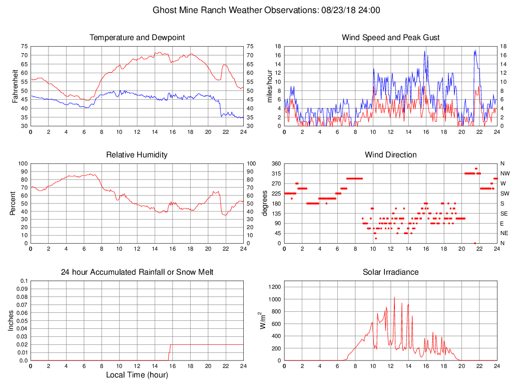 Dewpoint (F) 34.3 34.3 @ 24:00 50.2 @ 10:05 44.7