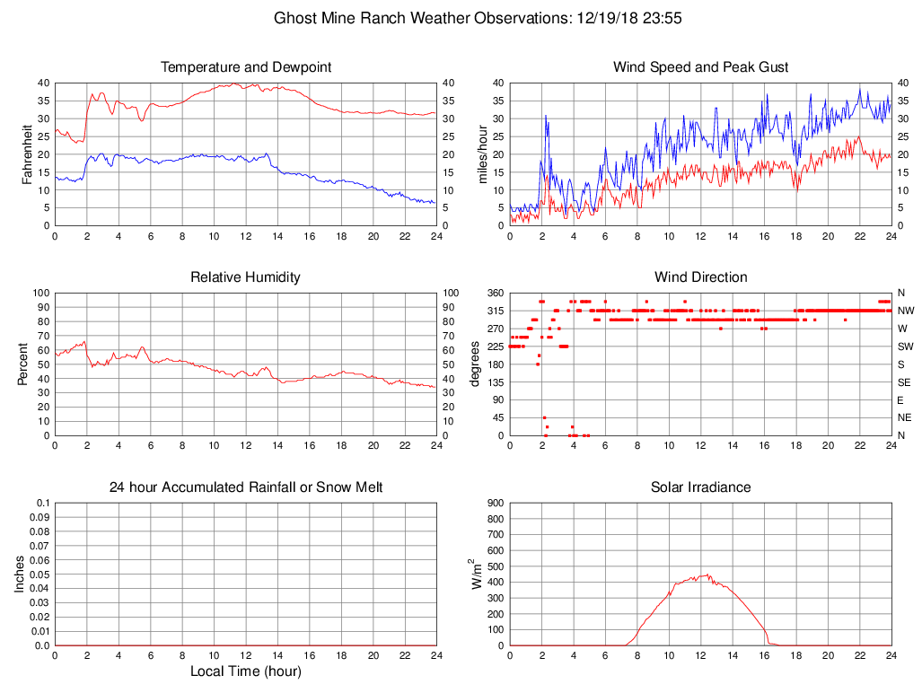 Wind Speed (mph) 19.0 1.0 @ 00:10 25.0 @ 21:55 12.6