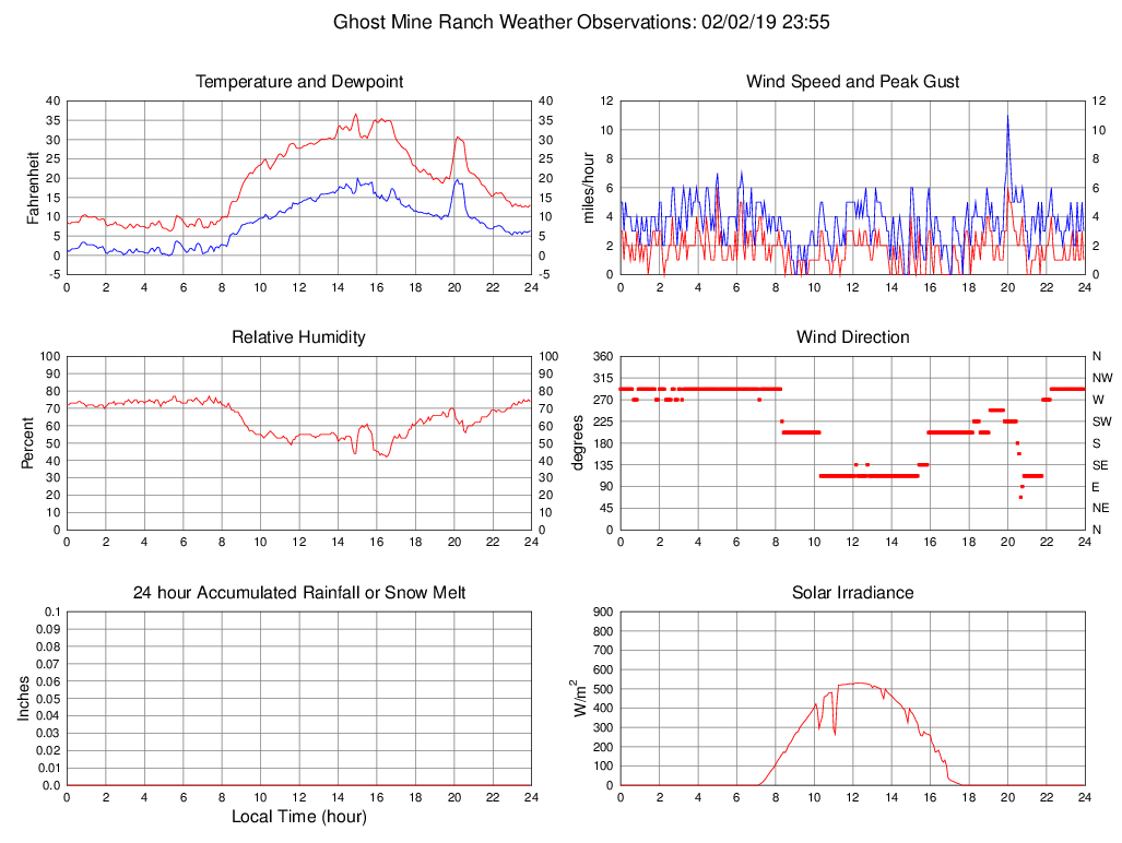 Temperature (F) 13.0 6.3 @ 05:20 36.6 @ 14:55 18.8