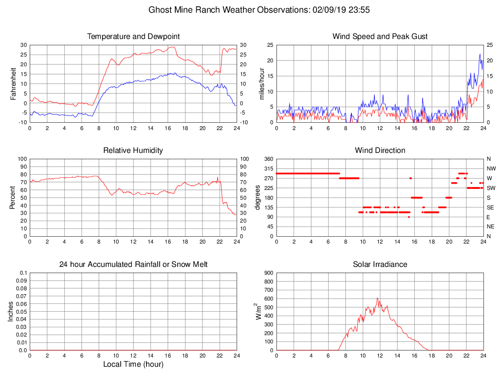 Dewpoint (F) -1.1 -7.3 @ 05:15 15.6 @ 16:50 4.7