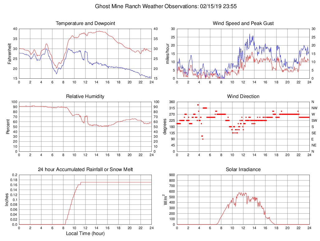 Temperature (F) 28.7 20.3 @ 06:45 38.9 @ 14:30 31.6