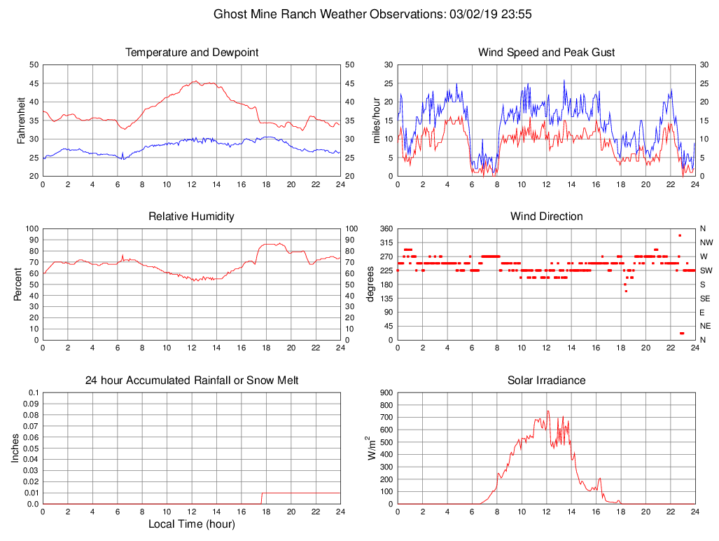 Temperature (F) 33.9 32.3 @ 20:55 45.7 @ 12:20 37.5