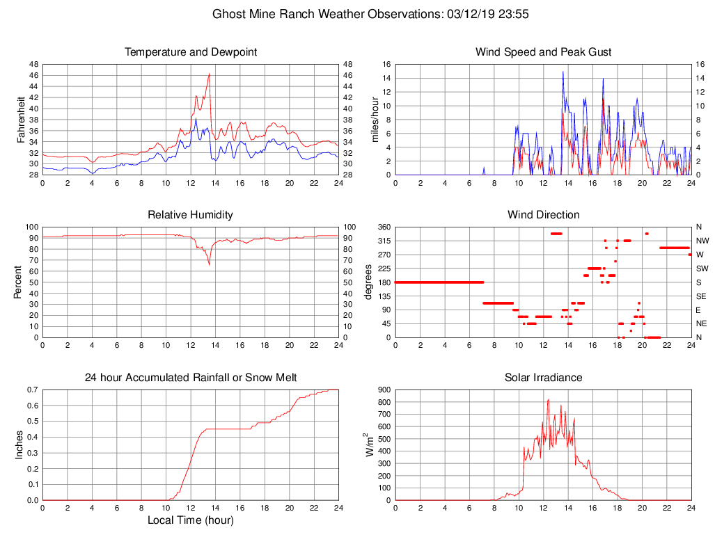 Dewpoint (F) 31.2 28.3 @ 04:00 38.1 @ 12:25 31.4