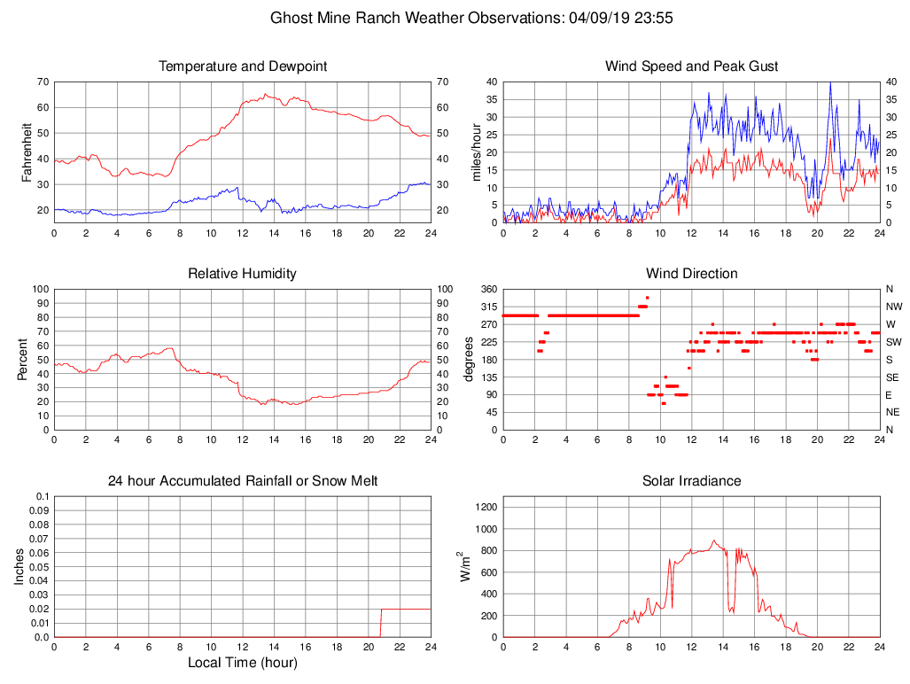 Temperature (F) 48.8 33.1 @ 03:55 65.4 @ 13:25 49.5