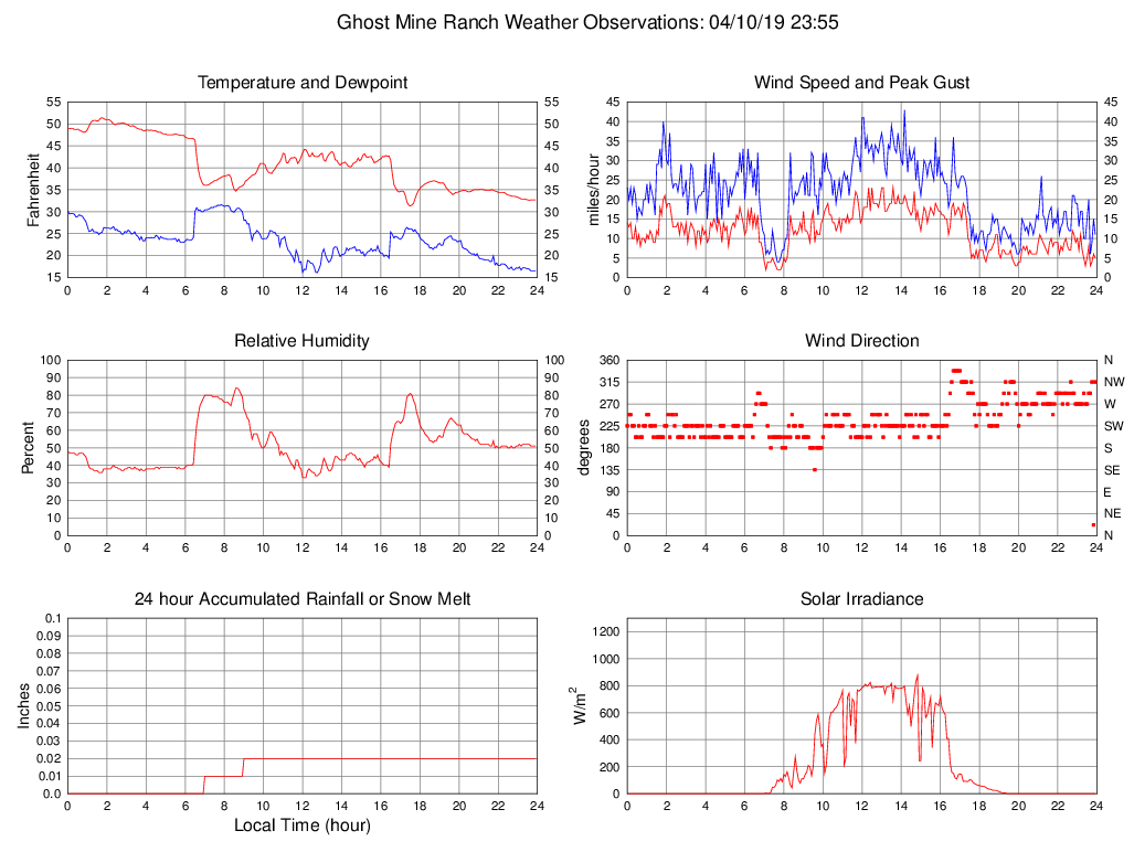 Temperature (F) 32.7 31.3 @ 17:30 51.4 @ 01:45 40.9