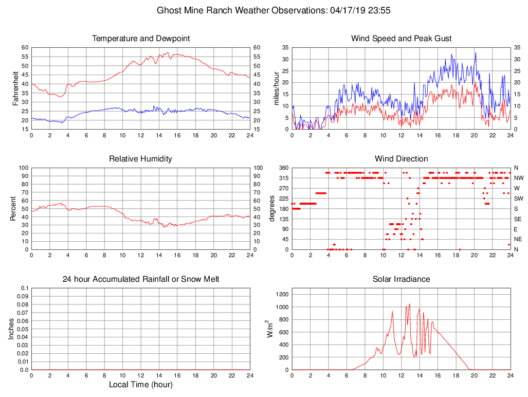 Temperature (F) 43.4 32.8 @ 03:15 57.4 @ 14:55 46.2