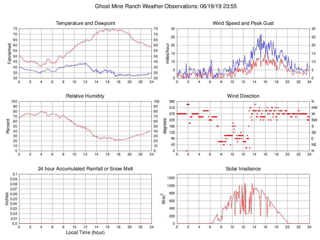 Temperature (F) 58.6 40.8 @ 03:50 74.5 @ 15:50 58.9