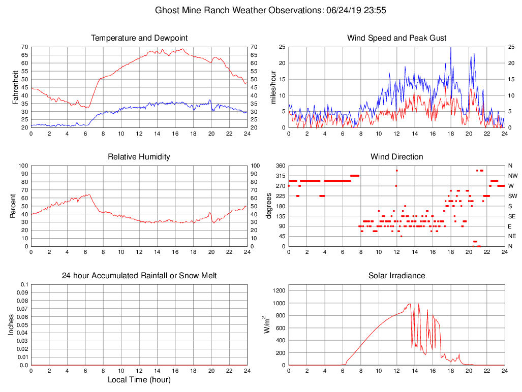 Solar Flux (W/m2) 0 0 @ 00:00 987 @ 13:25 254