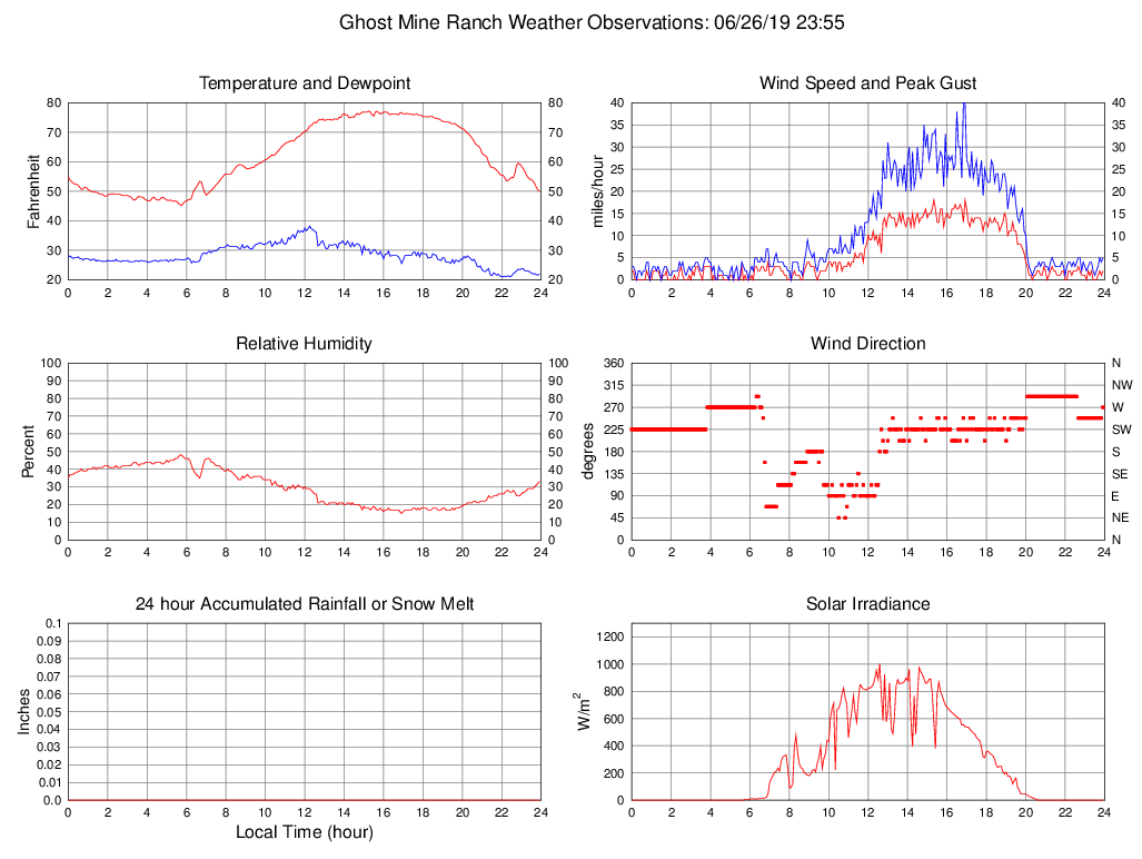Temperature (F) 50.0 45.2 @ 05:45 77.2 @ 15:15 61.6