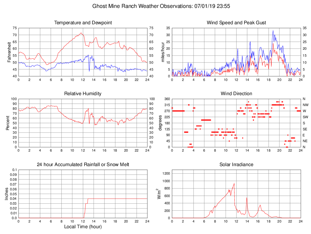 Dewpoint (F) 43.9 43.2 @ 19:35 55.4 @ 13:00 47.6