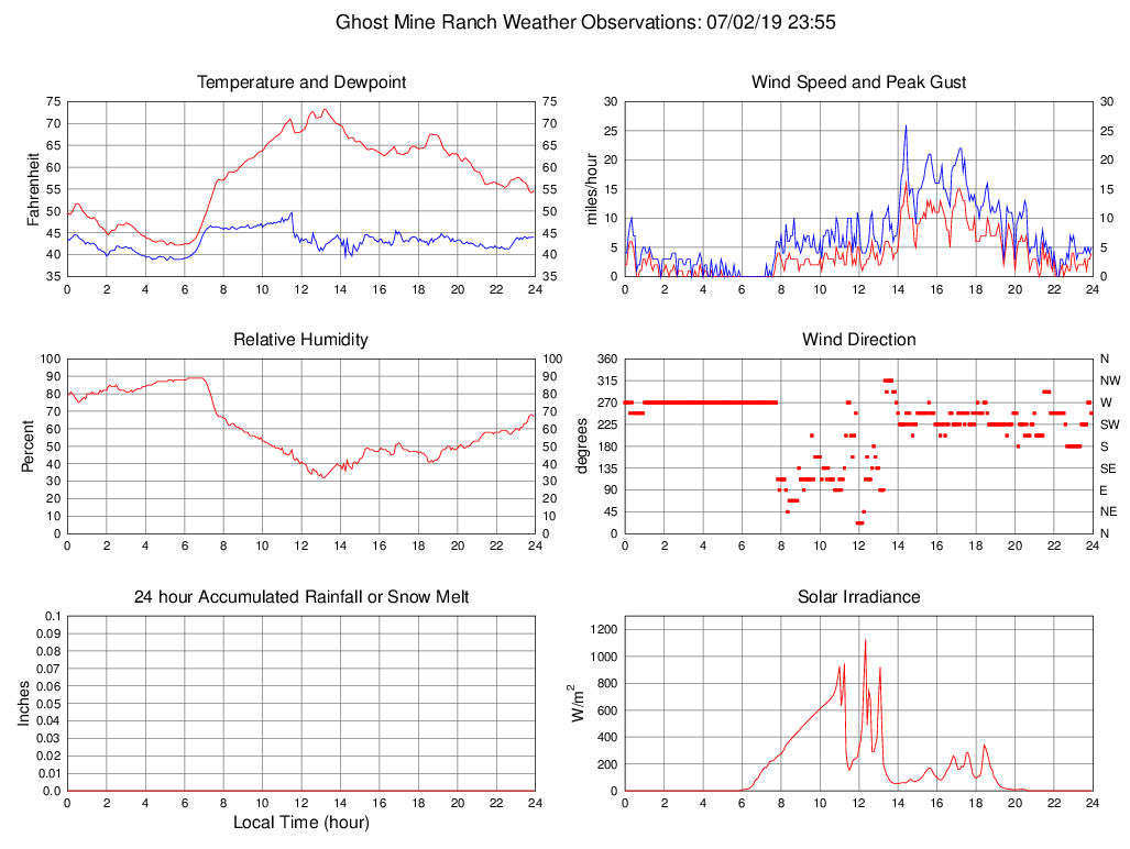 Temperature (F) 54.7 42.2 @ 05:30 73.3 @ 13:10 58.0