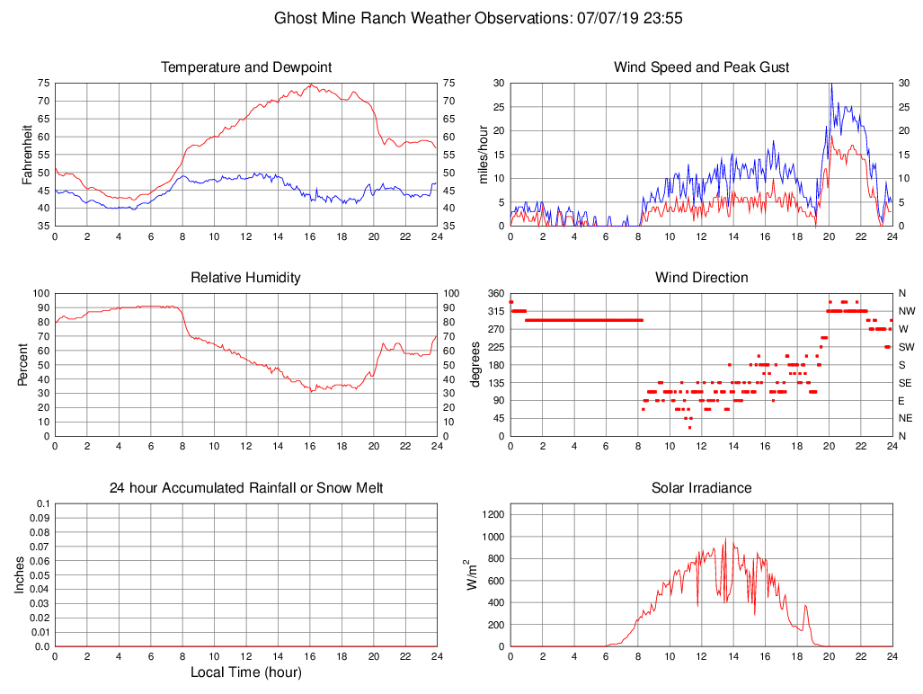Temperature (F) 56.8 42.3 @ 04:55 74.7 @ 16:05 58.8