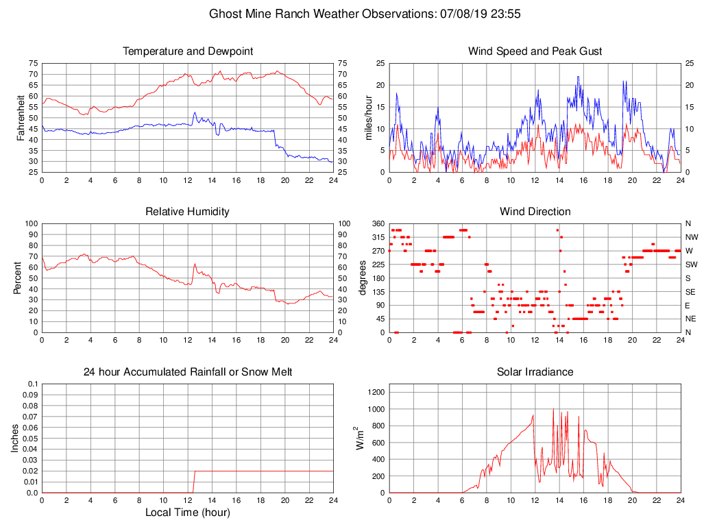 Temperature (F) 58.6 51.3 @ 03:25 71.5 @ 14:40 62.3