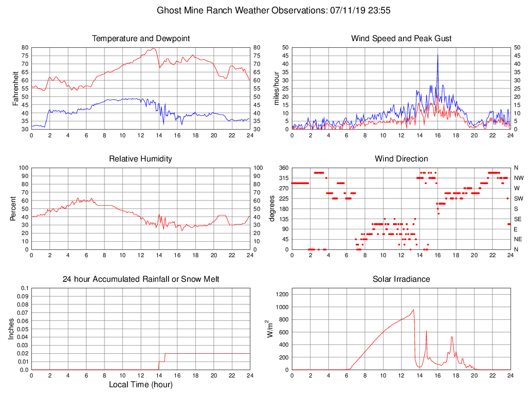 Temperature (F) 60.1 53.6 @ 01:20 79.5 @ 13:20 66.0
