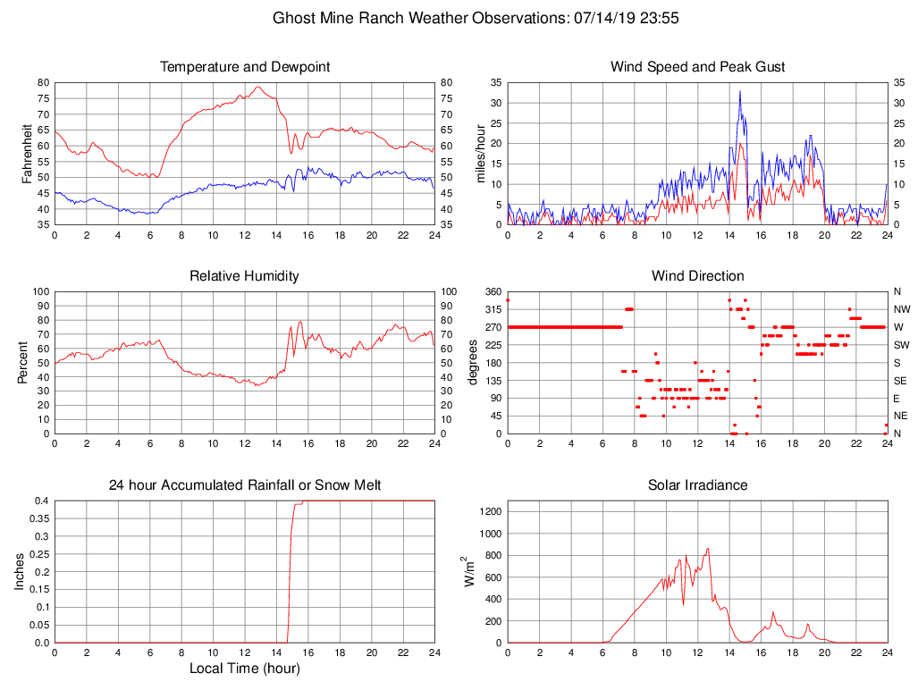 Temperature (F) 59.5 50.0 @ 05:55 78.7 @ 12:50 63.3
