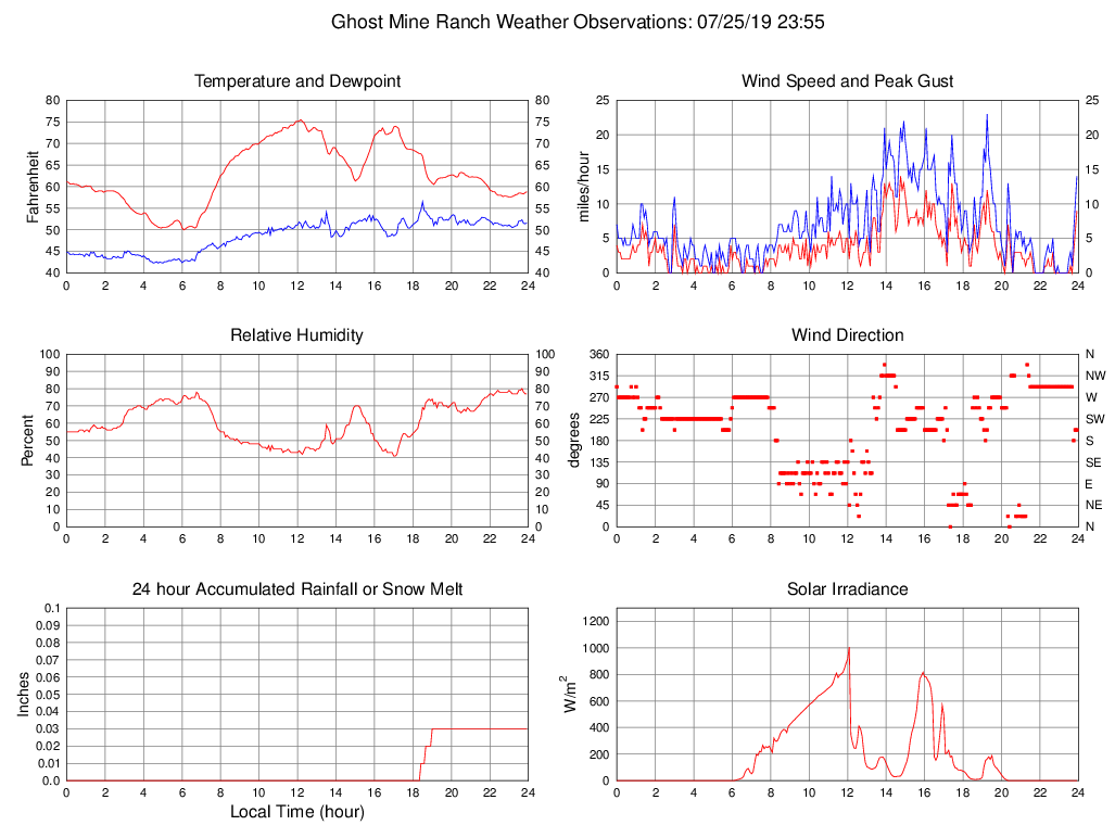 Temperature (F) 58.8 50.0 @ 06:05 75.5 @ 12:10 63.0