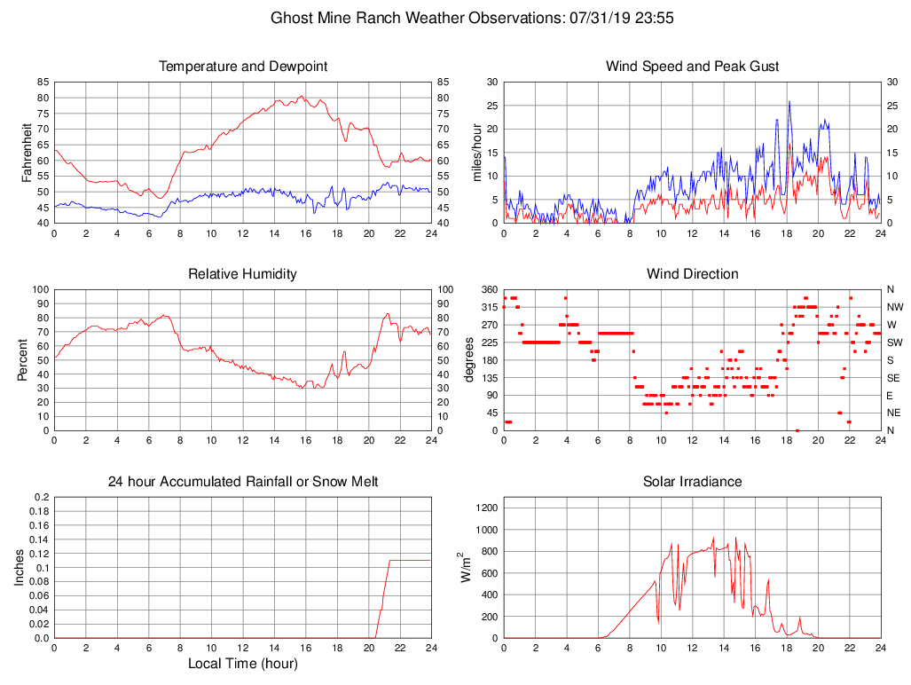 Temperature (F) 60.4 47.9 @ 06:40 80.6 @ 15:45 64.1