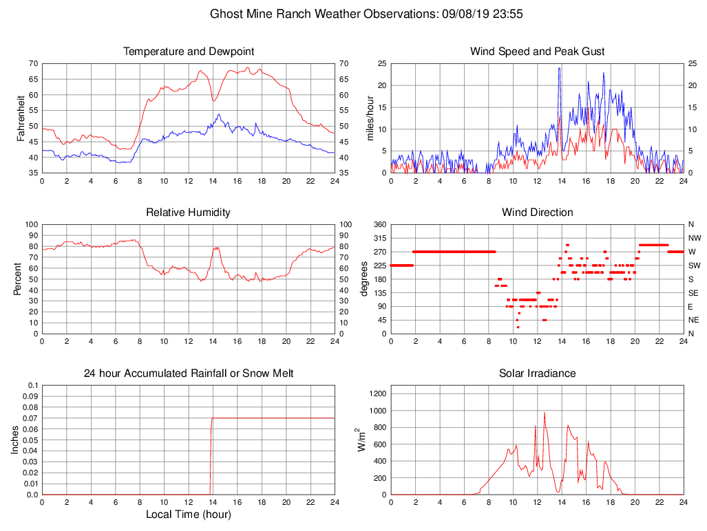 Temperature (F) 47.6 42.5 @ 06:25 68.8 @ 16:50 55.7