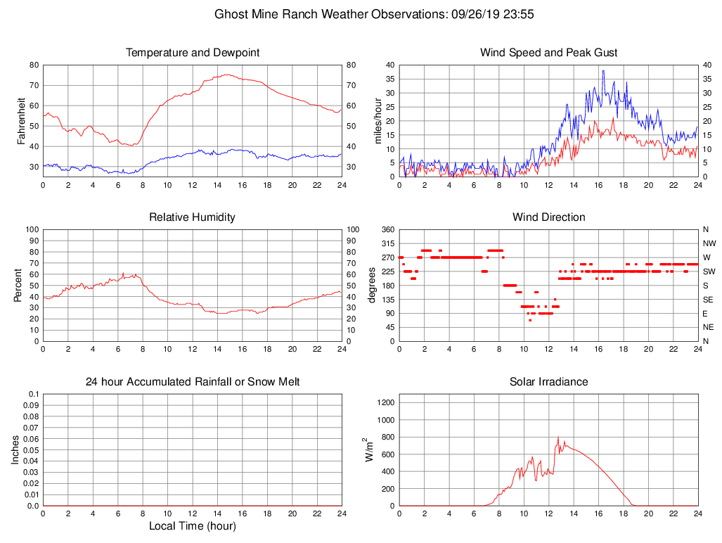 Temperature (F) 58.1 40.4 @ 07:05 75.3 @ 14:35 59.3