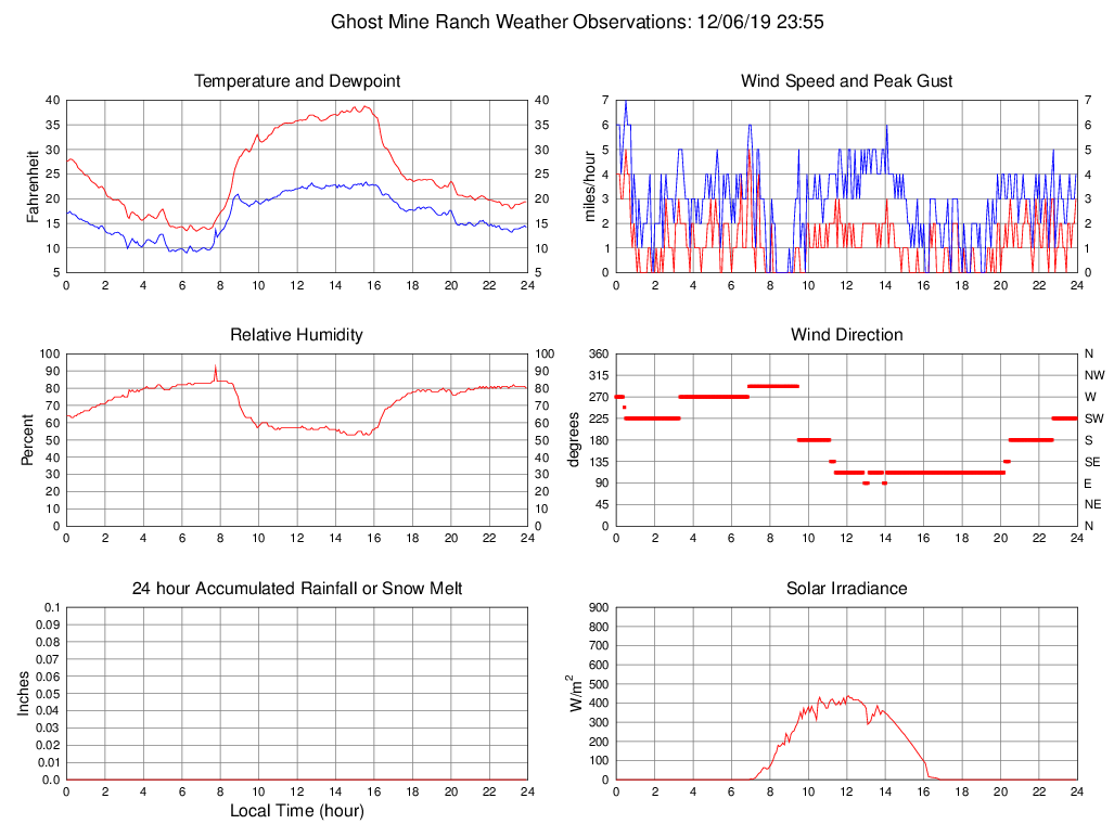 Temperature (F) 19.4 13.4 @ 06:45 38.8 @ 15:30 25.0