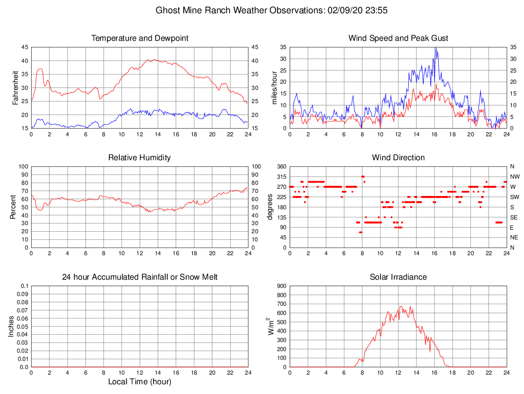 Temperature (F) 24.3 24.3 @ 23:55 40.5 @ 13:35 32.5