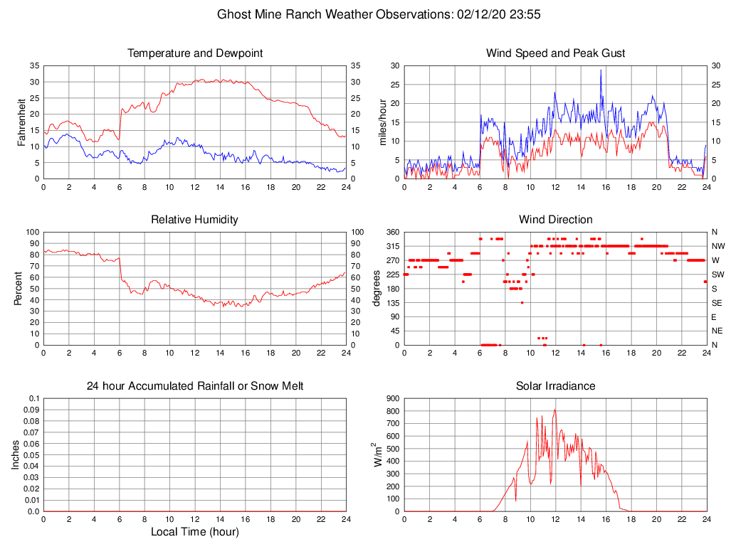 Temperature (F) 13.3 11.4 @ 03:55 30.8 @ 12:30 22.1