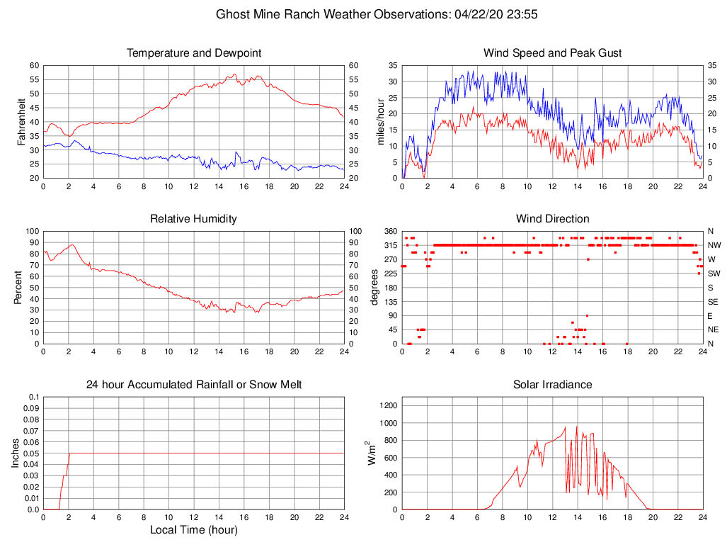 Temperature (F) 41.6 34.8 @ 02:05 57.0 @ 15:15 46.1