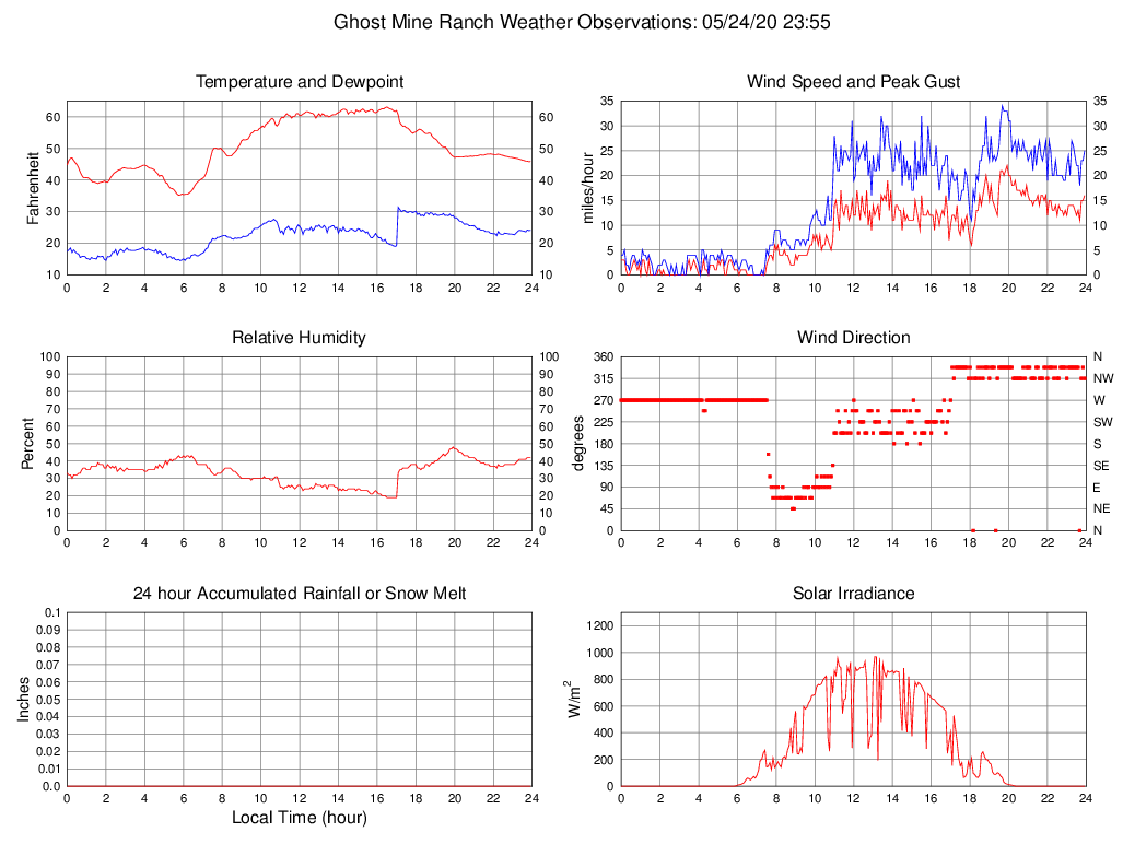 Temperature (F) 45.9 35.2 @ 05:45 63.1 @ 16:30 50.6