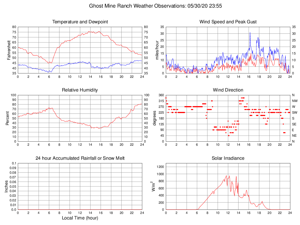 Temperature (F) 52.7 44.8 @ 05:50 75.7 @ 13:40 62.0