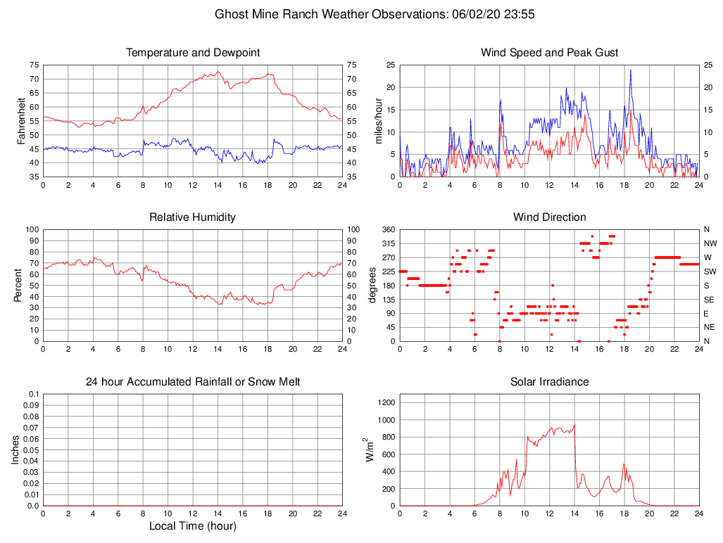 Temperature (F) 55.8 52.7 @ 02:50 72.7 @ 14:00 61.8