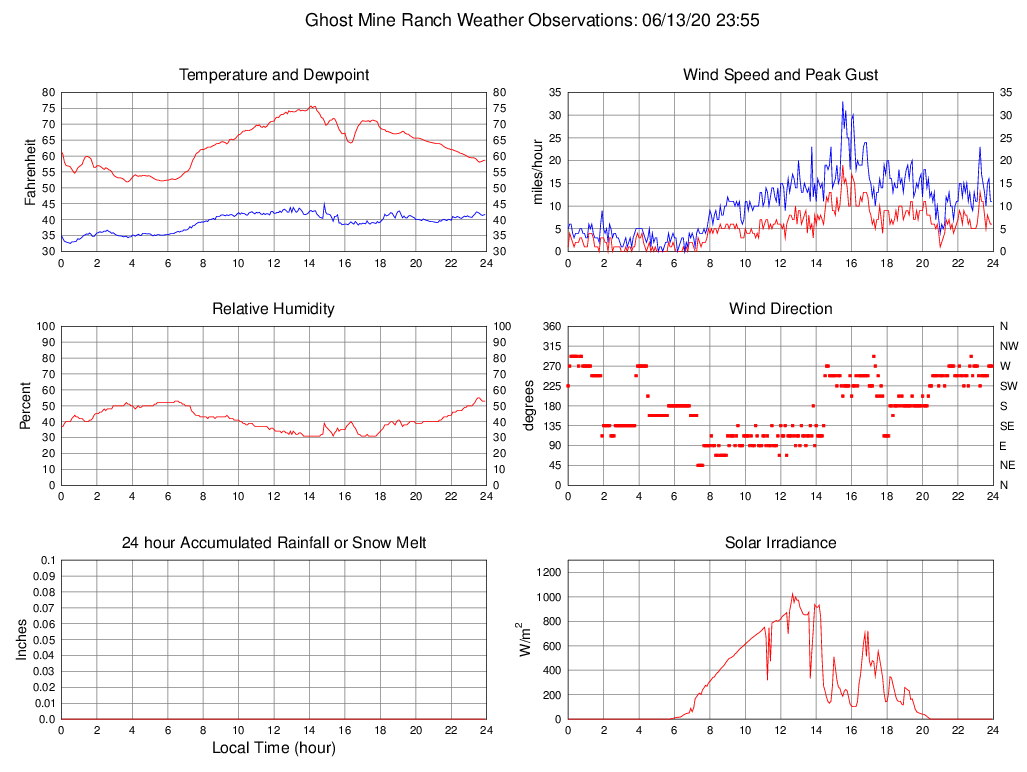 Temperature (F) 58.7 51.9 @ 03:40 75.7 @ 14:05 63.3