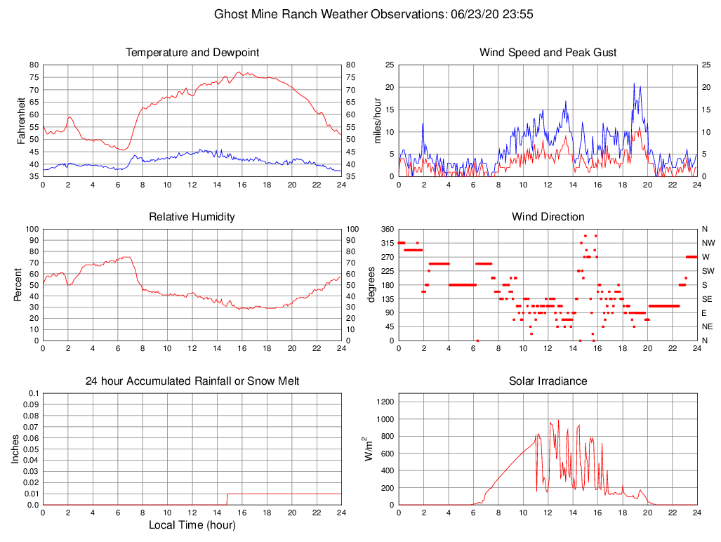 Temperature (F) 51.9 45.6 @ 06:25 77.2 @ 15:45 63.1