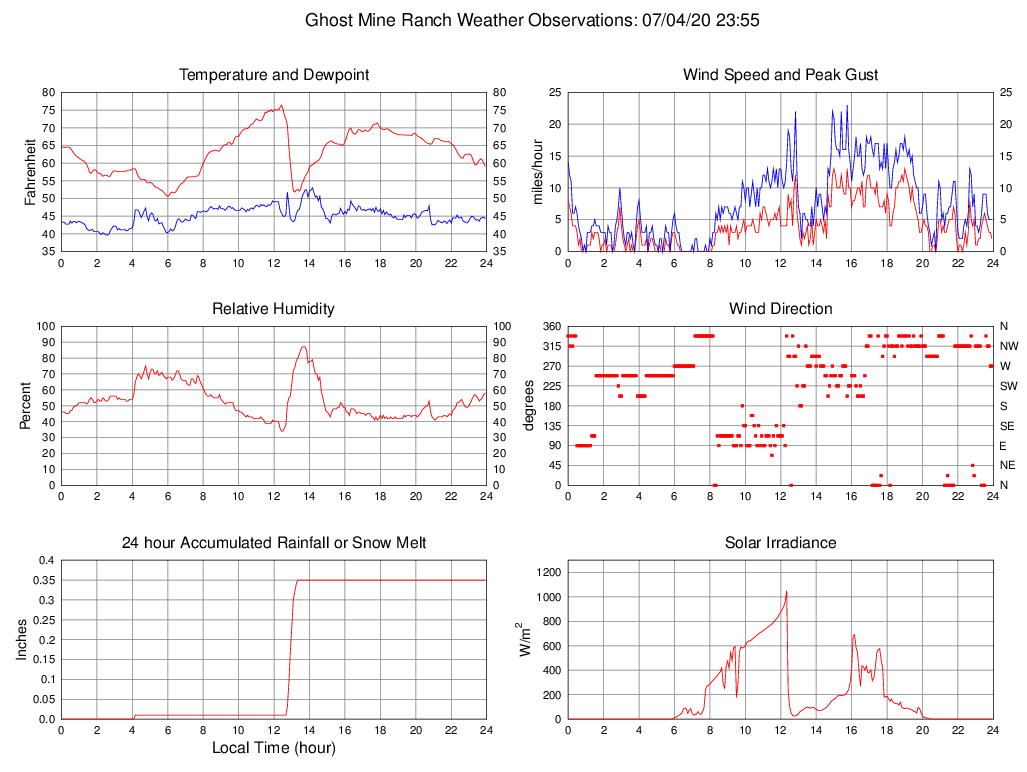 Temperature (F) 59.1 50.6 @ 06:00 76.4 @ 12:25 63.1
