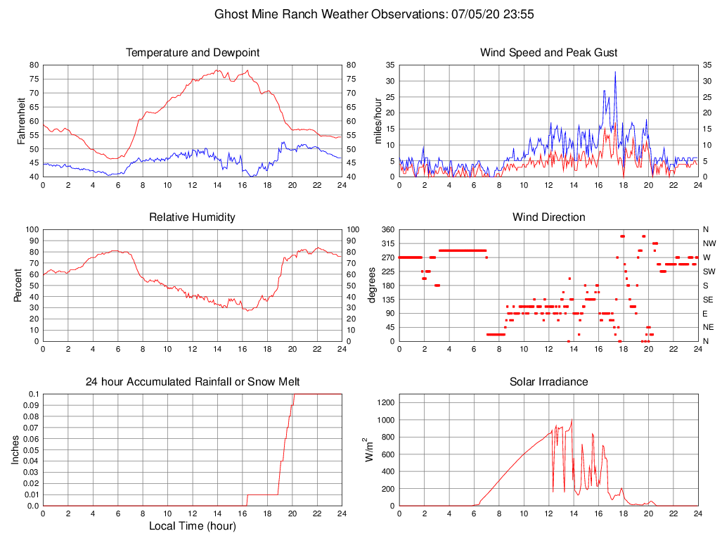 Temperature (F) 54.2 46.4 @ 05:25 78.2 @ 13:55 62.1