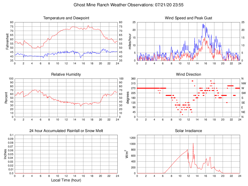 Temperature (F) 57.1 49.5 @ 04:40 76.3 @ 17:10 63.6