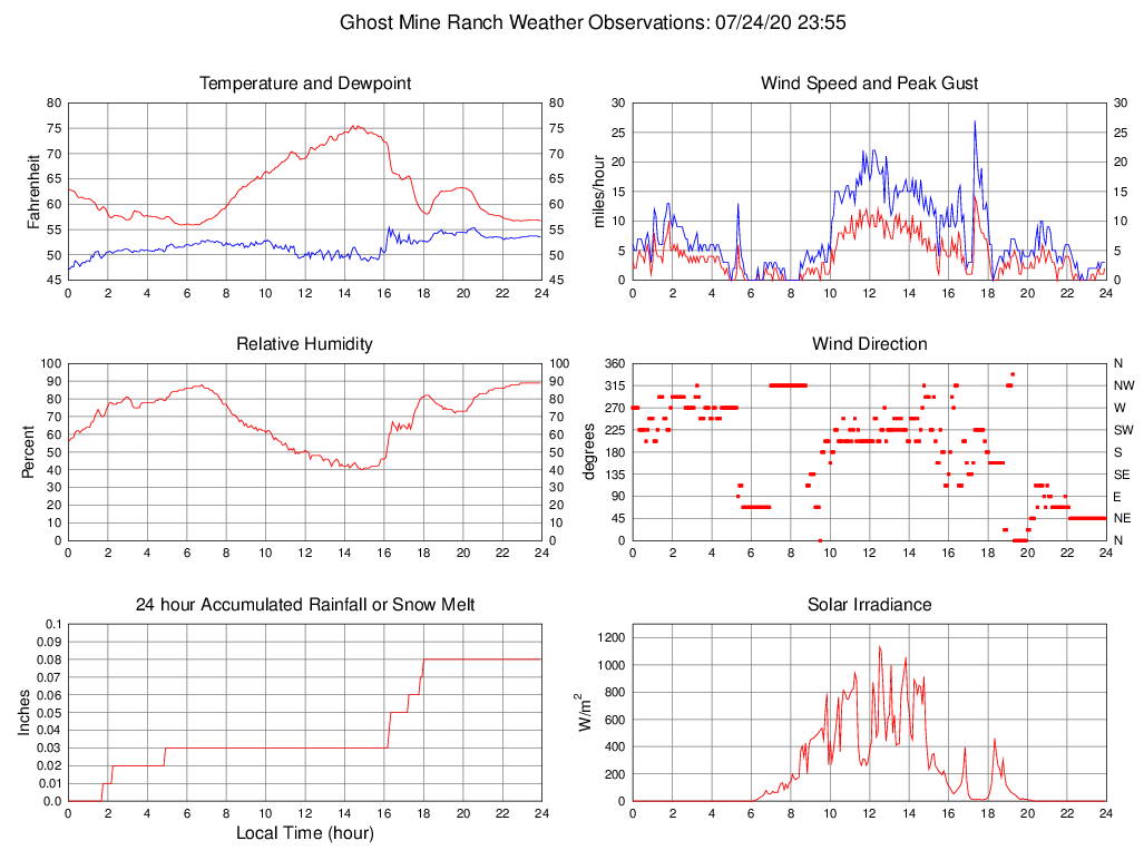 Temperature (F) 56.7 55.9 @ 05:40 75.5 @ 14:25 62.8