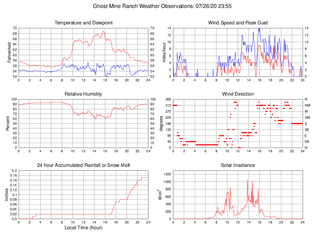 Dewpoint (F) 54.1 52.0 @ 16:15 57.1 @ 12:50 54.7