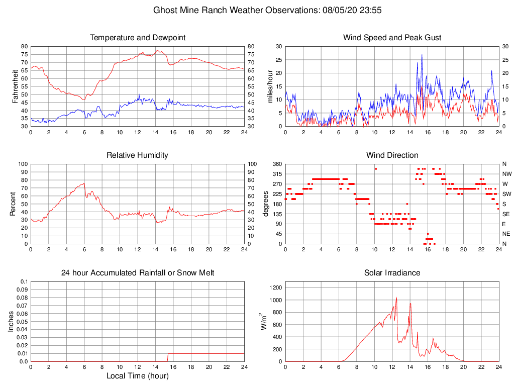Temperature (F) 65.9 46.7 @ 05:55 77.5 @ 14:10 65.2