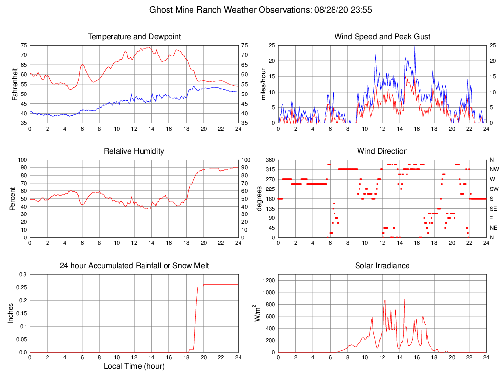 Temperature (F) 54.0 52.3 @ 04:40 74.0 @ 13:40 62.2