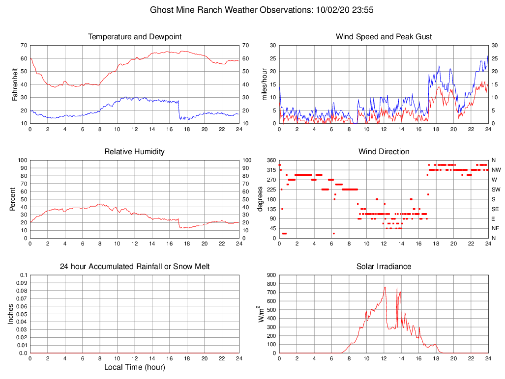 Temperature (F) 58.1 37.7 @ 02:50 65.6 @ 17:20 53.3