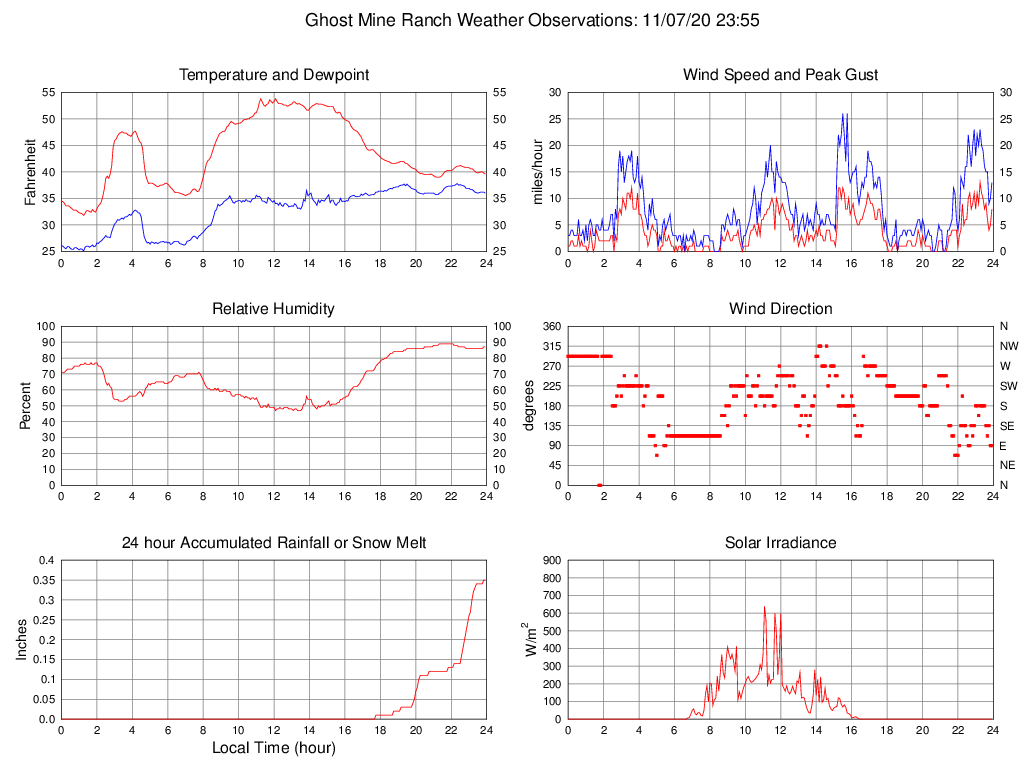 Temperature (F) 39.6 31.8 @ 01:15 53.8 @ 11:15 43.6