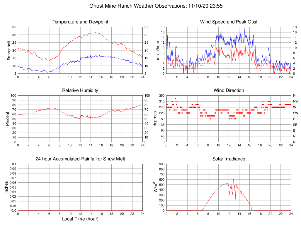 Temperature (F) 15.2 13.1 @ 05:40 31.5 @ 14:55 22.4