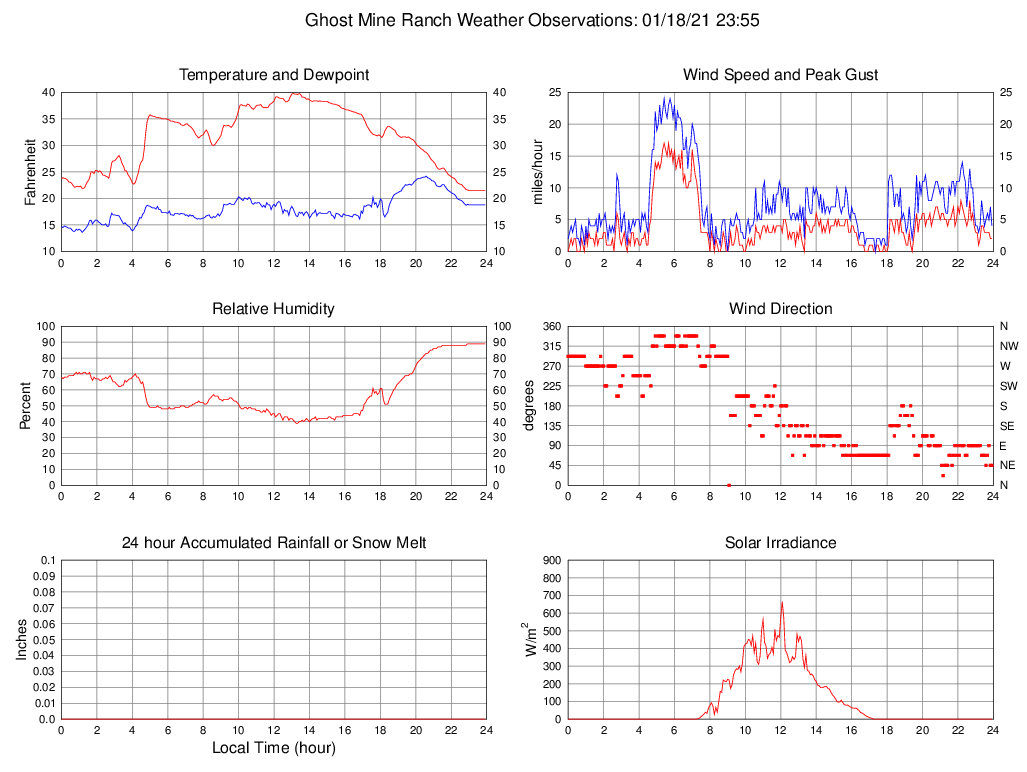 Temperature (F) 21.5 21.5 @ 23:00 39.8 @ 13:05 31.4