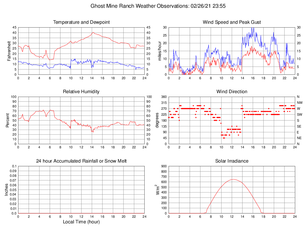 Temperature (F) 27.1 13.9 @ 05:55 40.3 @ 14:15 28.2