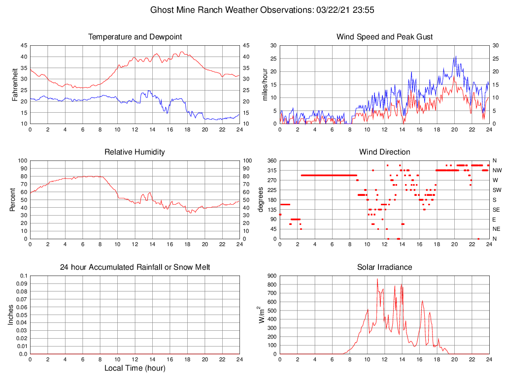 Temperature (F) 31.6 26.0 @ 05:45 42.2 @ 17:20 33.6