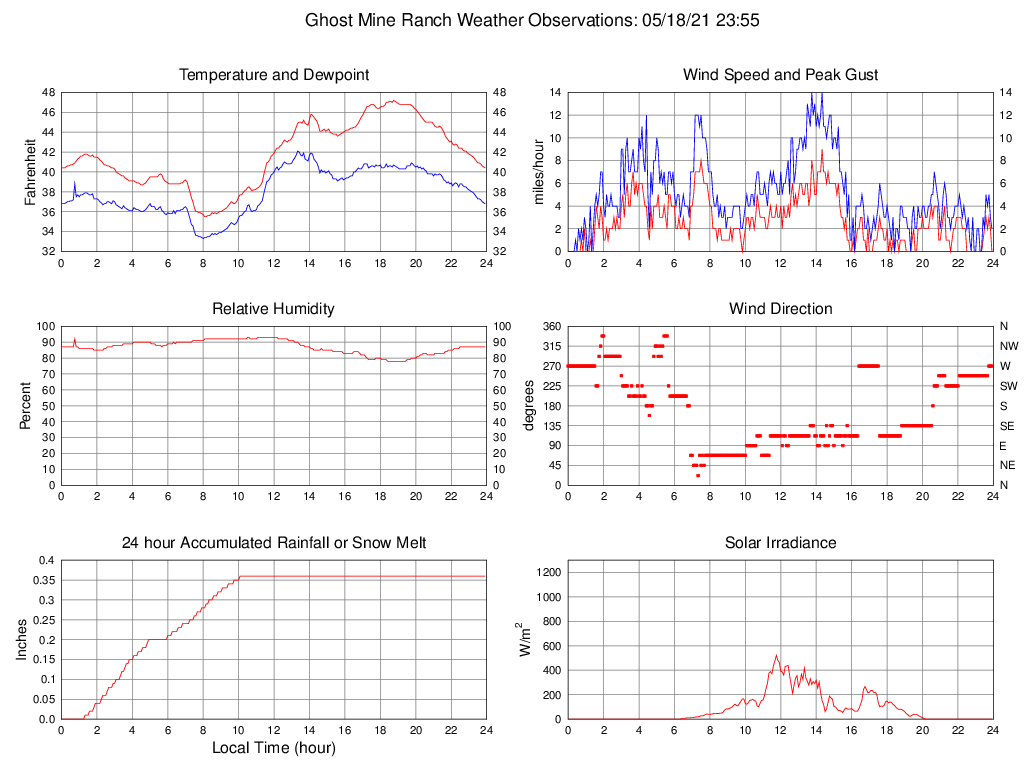 Dewpoint (F) 36.8 33.3 @ 08:00 42.1 @ 13:20 38.0