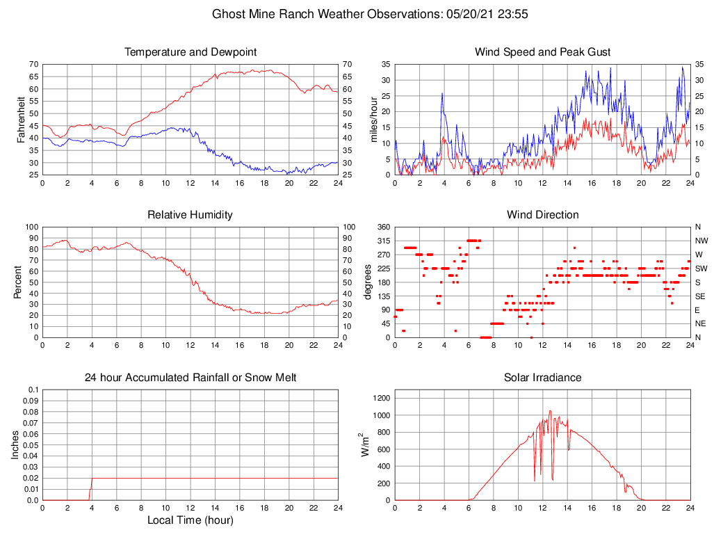 Temperature (F) 58.6 40.2 @ 01:25 67.7 @ 17:00 55.3