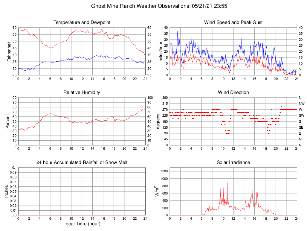 Temperature (F) 39.6 39.6 @ 23:55 59.0 @ 00:15 52.6