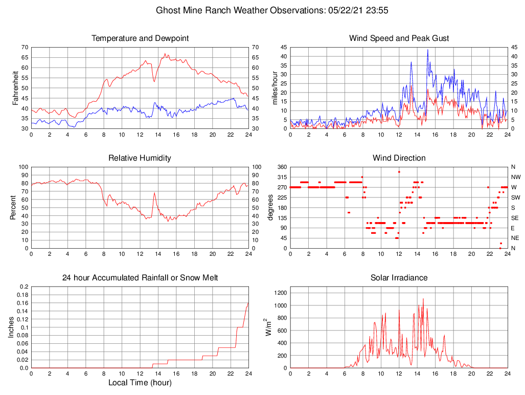 Temperature (F) 45.9 35.5 @ 04:45 66.9 @ 14:45 51.4